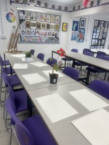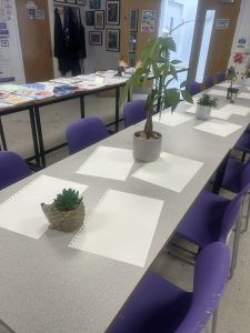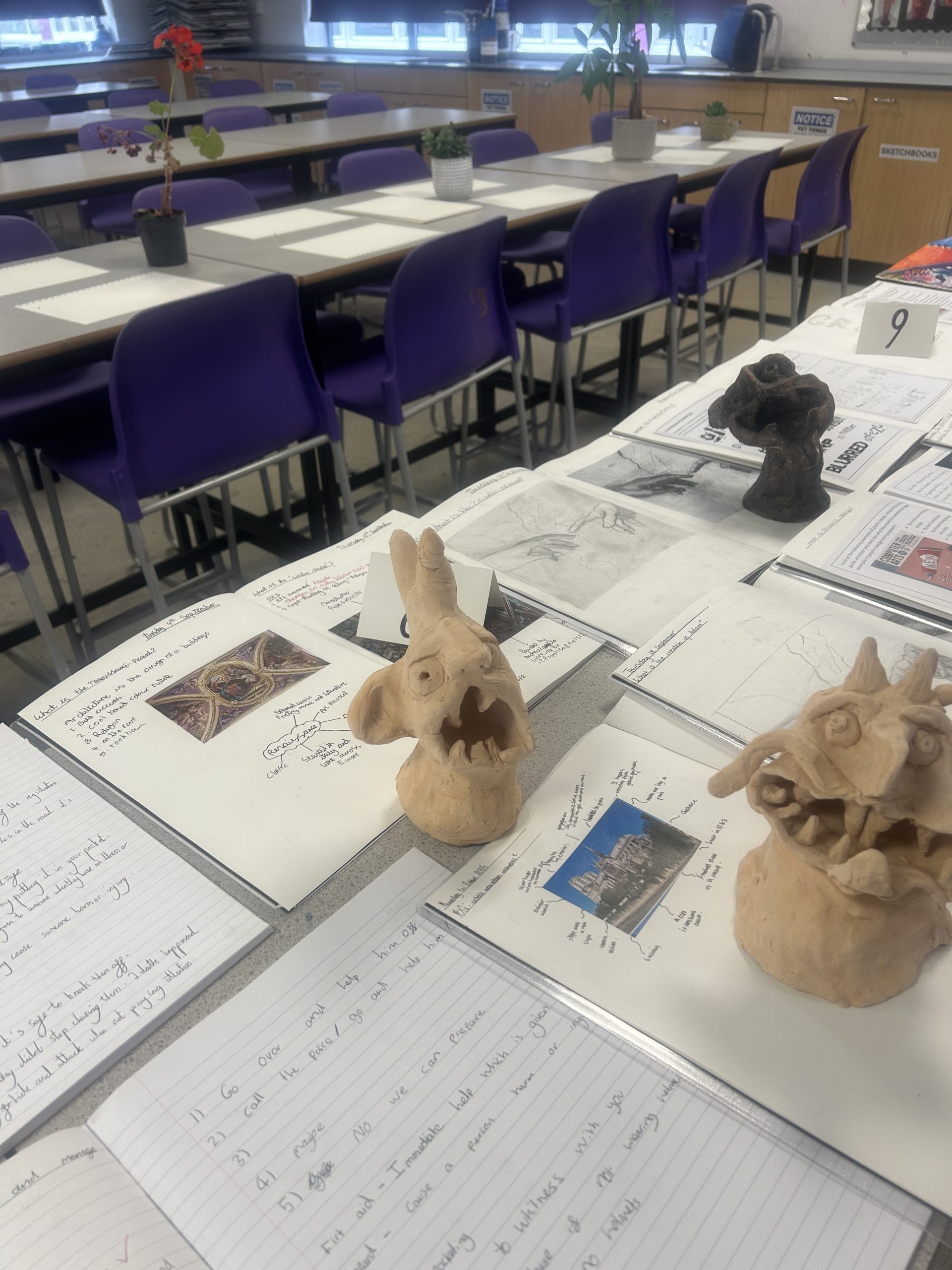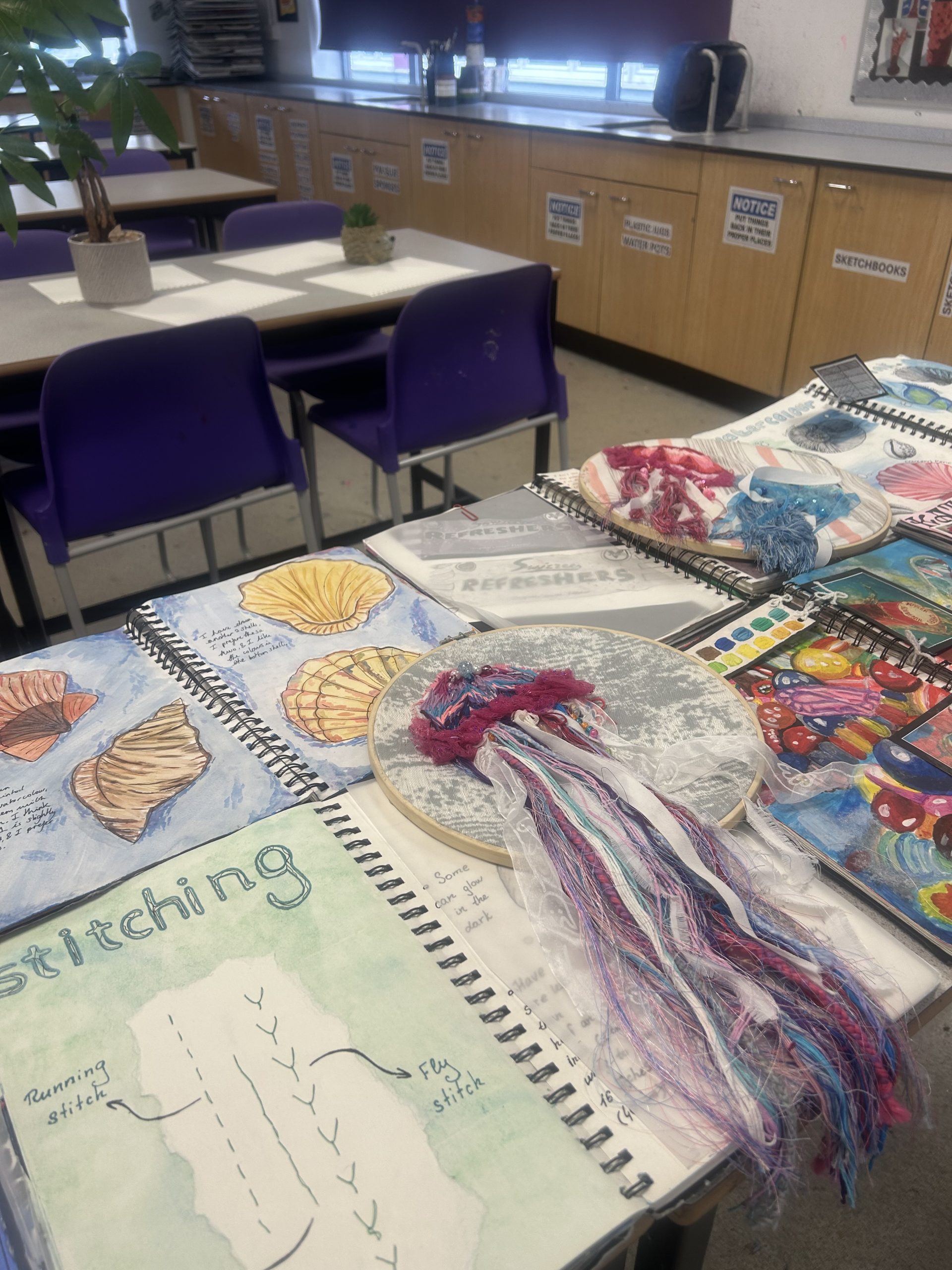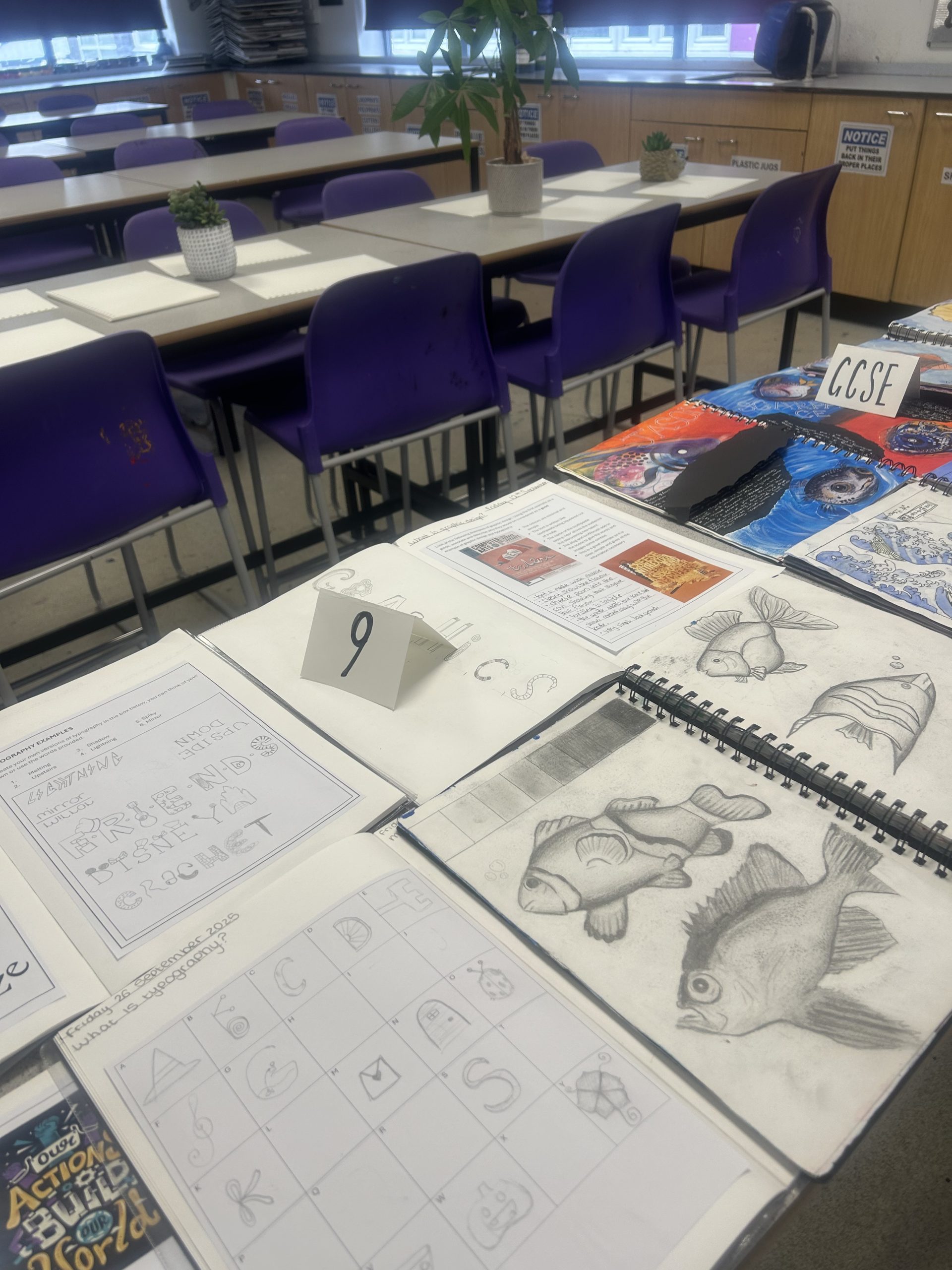 Open night 2025 in the art room! We had a range of sketchbooks and artwork from year 7-11 and a drawing activity where visitors could use the still life setup to create their own continual line drawing!